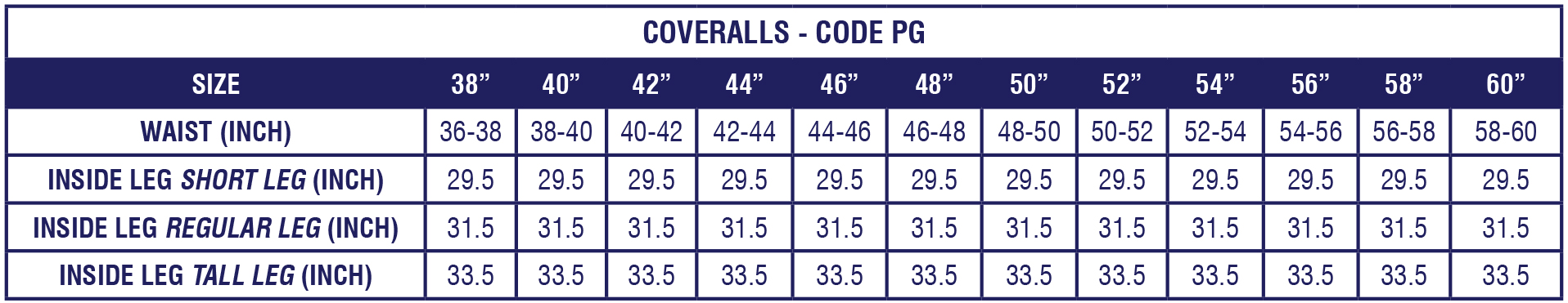 38"-60" Chest Regular Leg (31.5")