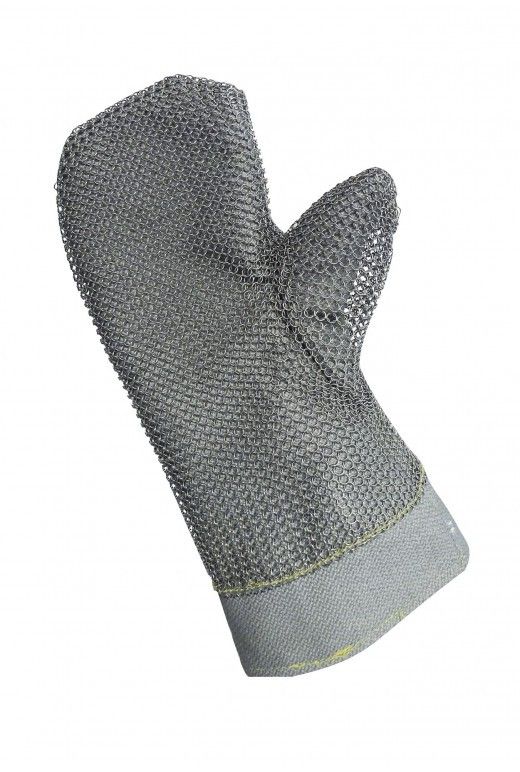 - Mitten made from Alutherm® fibreglass fabric covered with stainless steel chain mail