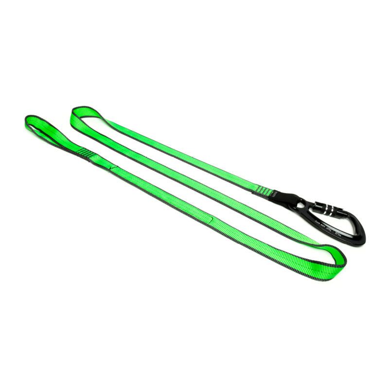 The twistlock double action carabiner ensures that there can be no accidental release whilst in use. The loop end of this lanyard can be used to loop around the captive handle of a power tool, through a manufactured captive eye, or around a fixed object or beam.