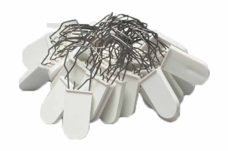 Anti-tamper seals lock your keys or asset onto either the Keytracker mechanical system, Retaining Peg or Keytracker e-Lite electronic Intelligent Peg. Thread the seal through the head of the key/s or a fixing point on the asset then the relevant Peg. Once all together, push the metal end of the Anti-tamper seal into the white plastic shaped head and push in completely, the wire locks back on its self and locks the seal. The seal is designed for one use only and will have to be cut off if for any reason the keys or asset needs to replaced or moved to a different location.