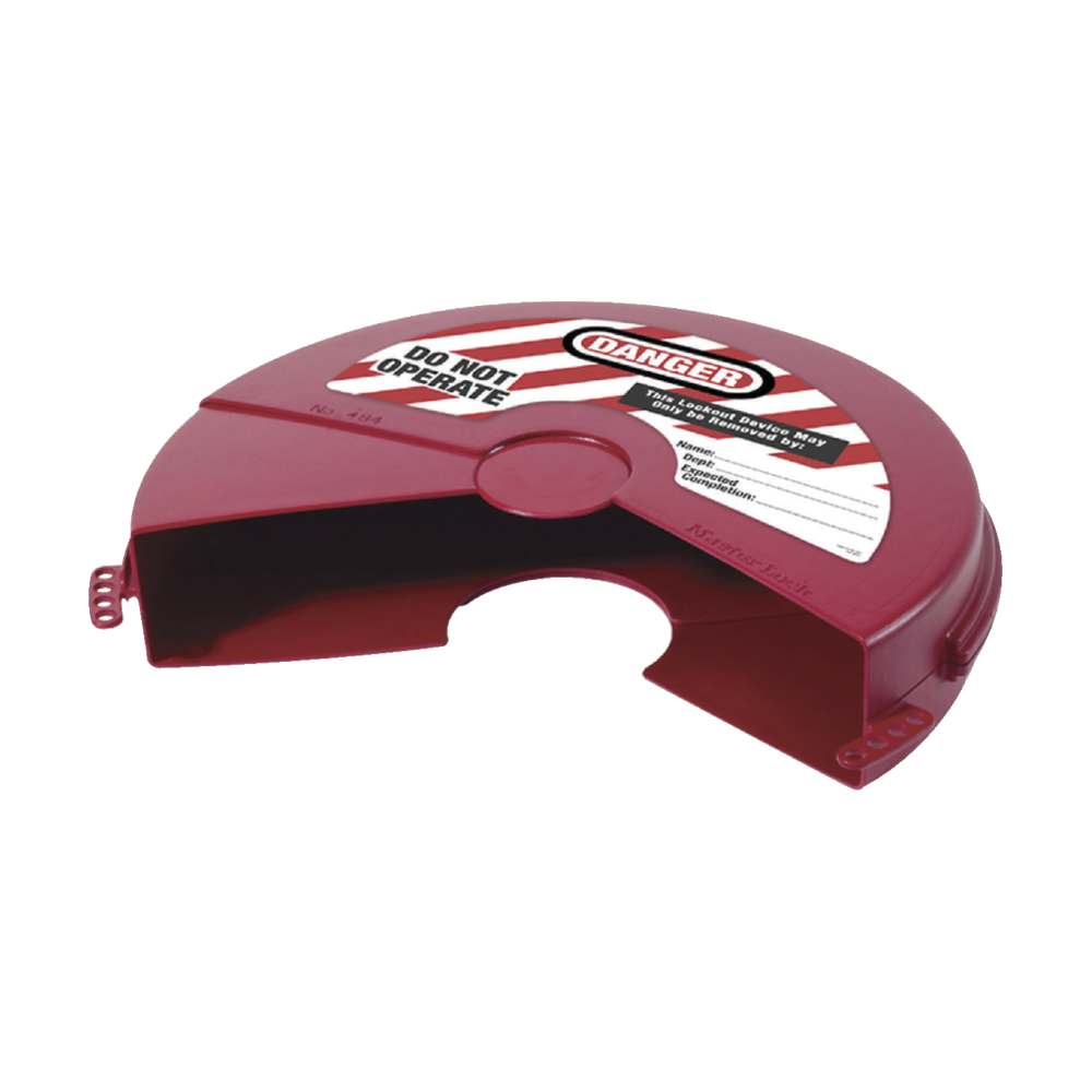 Simple to use. Place over the handwheel (Figure 1), rotate until closed and attach a padlock (Figure 2).