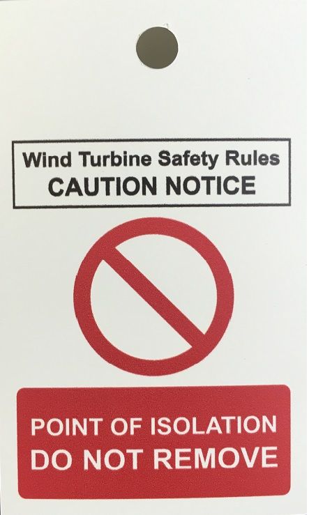 Wind Turbine Safety Rules isolation tags - pack of 10